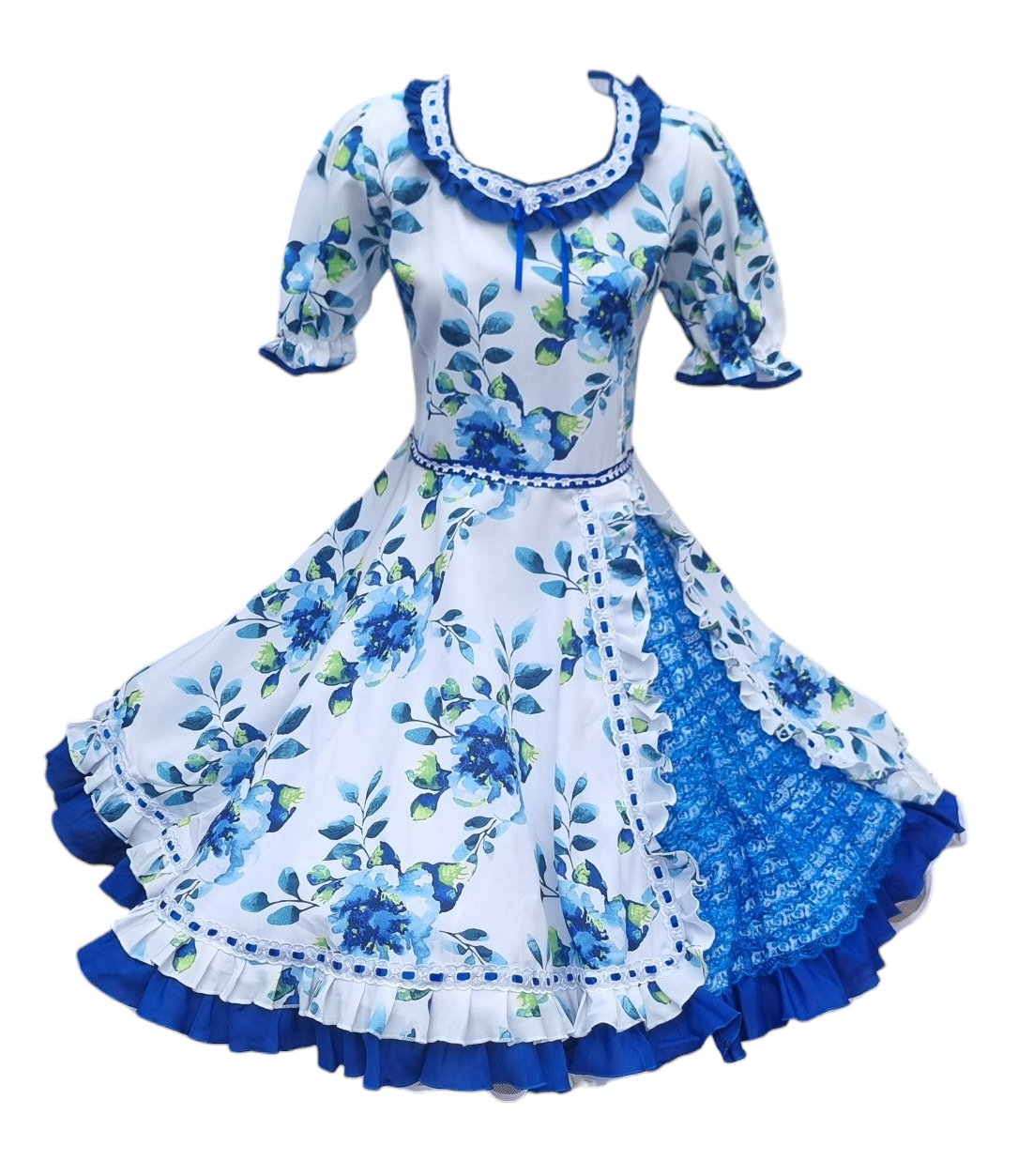 Vestido Huasa China Mujer Adulto Tallas S, M, L, XL y 2 XL Blanco Azul